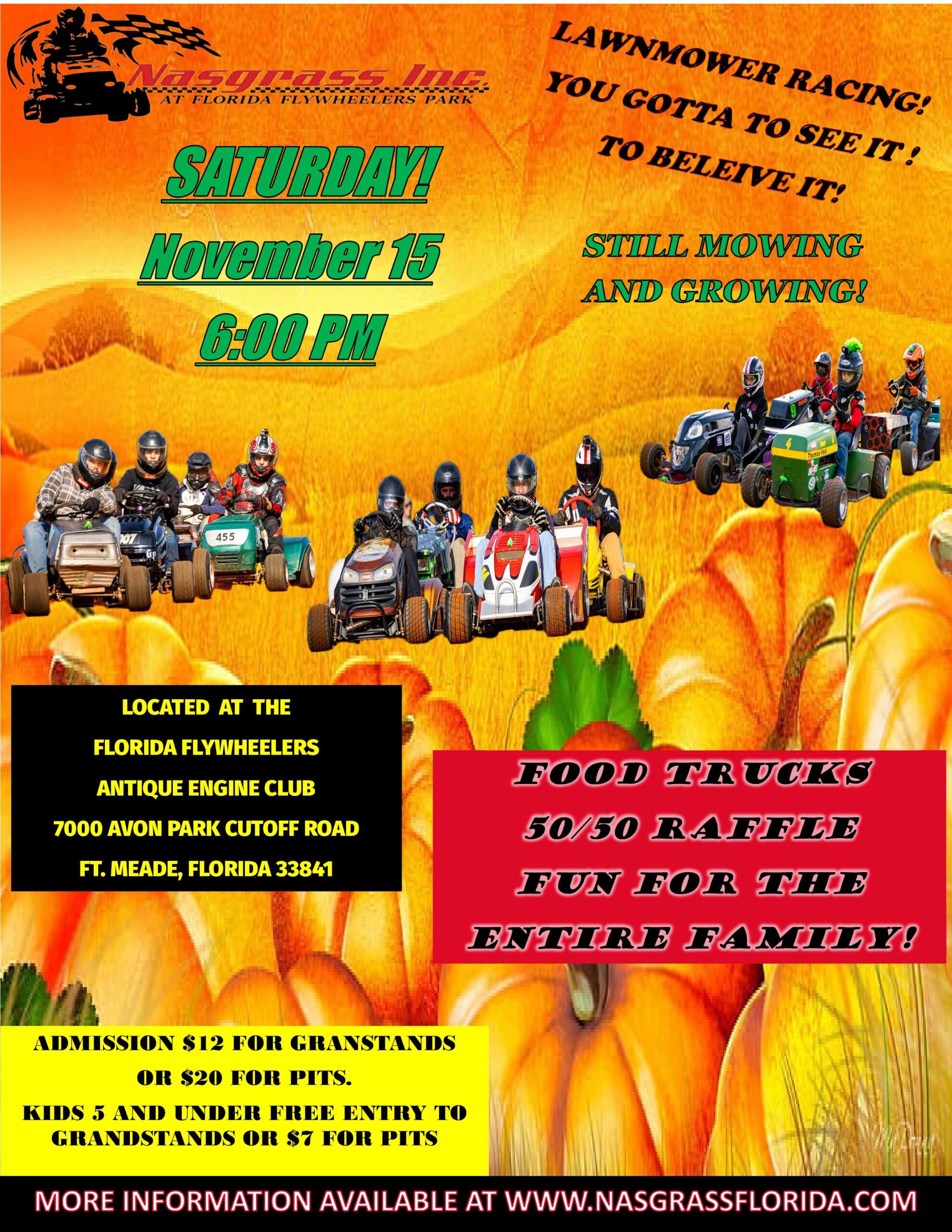ADMISSION – $12 FOR GRANDSTANDS or $20 FOR PIT ENTRY